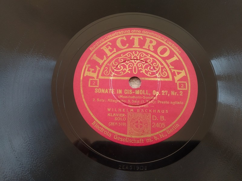 Δισκος 78 στροφων SHELLAC 78rpm SONATA IN CIS MOLL Op 27 Nr.2 Moonshine Sonata Adagio Sostenuto 30cms