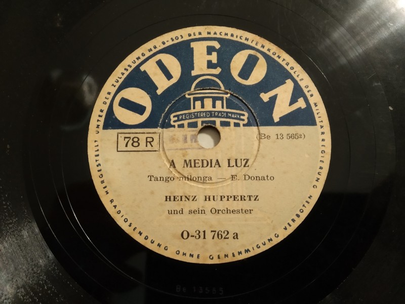 Δισκος 78 στροφων SHELLAC 78rpm ODEON LA PLATA MIA Heinz Huppertz A MEDIA LUZ Tango milonga Donato 25cms
